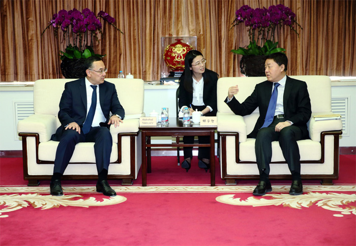 On 18 April, Mr. Xie Xuezhi, Chairman of ADBC, met with Mr.Abdivahod Tamikaev, Chairman of JSCB Agrobank in ADBC Head Office.