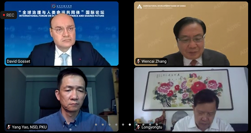 On August 26th, Executive Vice President of ADBC Mr. Zhang Wencai participated in the International Forum on Global Governance and Shared Future co-organized by the Academy of Contemporary China and World Studies under China Foreign Languages Publishing Administration (China International Publishing Group) and Europe-China Forum, and delivered a speech on transforming the global governance system post Covid-19 via video link. Mr. Zhang stressed the importance of improved global governance in jointly fighting the coronavirus pandemic, tackling climate change and promoting global sustainable development in the post Covid-19 era from perspectives of global supply of public goods, macro policy coordination and international cooperation and exchange. The forum attracted 21 experts and scholars from China, France, Italy, Switzerland, Bulgaria and Australia who had discussions around the topic of promoting a community of shared future for mankind amid new dynamics of global governance. Heads of Institute of Rural Finance and Development, and International Department of ADBC were also present.