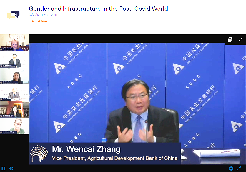 On October 28th 2021, Executive Vice President of ADBC Mr. Zhang Wencai attended the 2021 AIIB Annual Meeting. At the high level seminar on Gender and Infrastructure in the Post Covid World, Mr. Zhang shared with the panelists ADBC’s rural infrastructure projects that benefited women, and highlighted the importance of project design, balancing physical and social infrastructure, supporting productive sectors and developing new-type infrastructure (i.e. digital and connectivity infrastructure) in promoting all-around development of women and gender equality in the post Covid era.