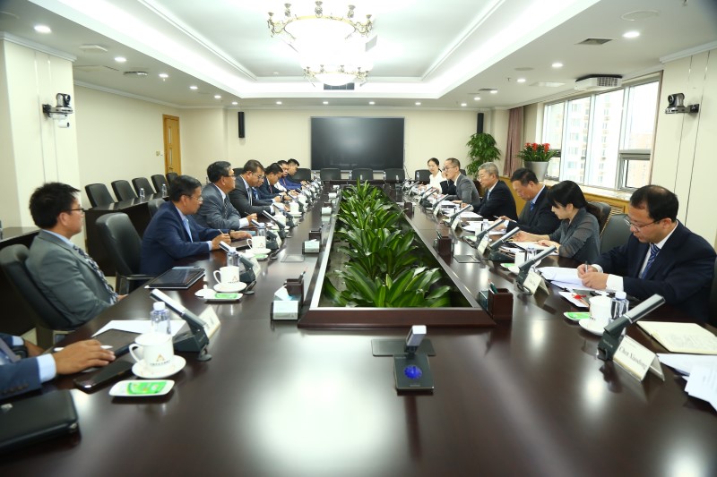 On September 27, Mr. Qian Wenhui, Chairman of ADBC, met with Mr. Kao Tach, CEO of the Agricultural and Rural Development Bank of Cambodia (ARDB), at ADBC headquarters. Mr. Du Yankun, Chief Strategy Officer, also attended.