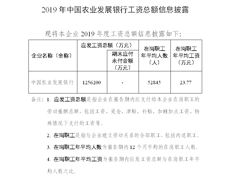 2019年中國農業(yè)發(fā)展銀行工資總額信息披露