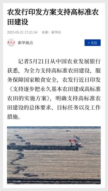 農(nóng)發(fā)行印發(fā)方案支持高標(biāo)準(zhǔn)農(nóng)田建設(shè)