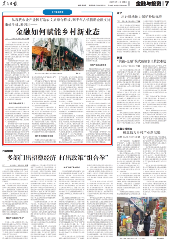 在全面推進鄉(xiāng)村振興的征程中,金融力量正成為激活鄉(xiāng)村資源、培育新業(yè)態(tài)、推動產(chǎn)業(yè)融合發(fā)展的關(guān)鍵引擎。從農(nóng)村宅基地改革盤活土地資源,到現(xiàn)代農(nóng)業(yè)產(chǎn)業(yè)園打造農(nóng)文旅融合樣板,再到千年古鎮(zhèn)借助金融支持重?zé)ㄉ鷻C,一系列生動實踐展現(xiàn)了金融助力鄉(xiāng)村新業(yè)態(tài)發(fā)展的強大效能,為建設(shè)宜居宜業(yè)和美鄉(xiāng)村注入澎湃動力。記者日前走進四川多地,探尋金融助力鄉(xiāng)村新業(yè)態(tài)發(fā)展的秘密。