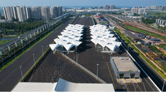 這是2025年9月23日拍攝的海口新海港和南港“二線口岸”(貨運(yùn))集中查驗(yàn)場(chǎng)海關(guān)查驗(yàn)區(qū)(無(wú)人機(jī)照片)。新華社記者 楊冠宇 攝