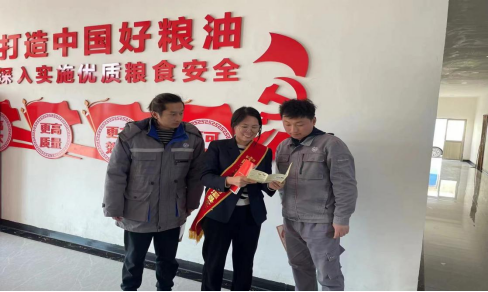 圖3:農(nóng)發(fā)行工作人員進企業(yè)幫助企業(yè)員工了解消保政策。