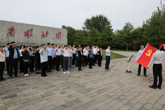 活動當(dāng)天上午,全體人員聽取基礎(chǔ)設(shè)施部黨支部水利處負(fù)責(zé)同志介紹農(nóng)發(fā)行“水利銀行”品牌建設(shè)情況。下午,前往南水北調(diào)團(tuán)城湖調(diào)節(jié)池開展現(xiàn)場教學(xué),參觀南水北調(diào)紀(jì)念園,深入了解南水北調(diào)工程建設(shè)歷程和發(fā)揮作用情況。在“飲水思源”紀(jì)念碑前,全體人員重溫入黨誓詞,面向黨旗莊嚴(yán)宣誓。參觀結(jié)束后,全體人員觀看新華社短片《跟著總書記“瞰”南水北調(diào)工程》,進(jìn)一步親身感受習(xí)近平總書記對人民飲水保障的高度重視和深情掛念。部分青年黨員圍繞“一泓清水潤南北、青春接力述擔(dān)當(dāng)”作交流分享,以親身體會述說了南水北調(diào)工程給沿線地區(qū)帶來的巨大變化,并深情朗誦了歌頌?zāi)纤闭{(diào)工程與農(nóng)發(fā)行履職擔(dān)當(dāng)?shù)母木幵姼琛赌纤鎏觥贰?
